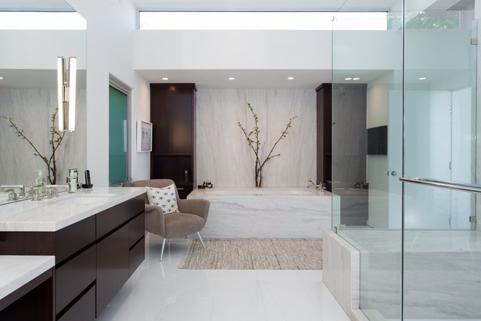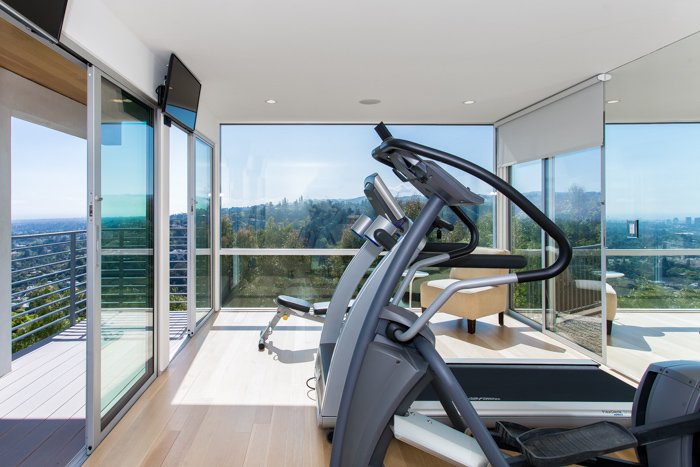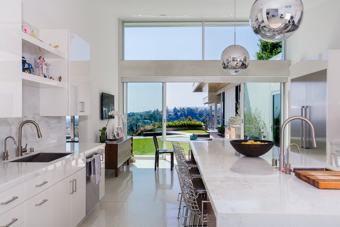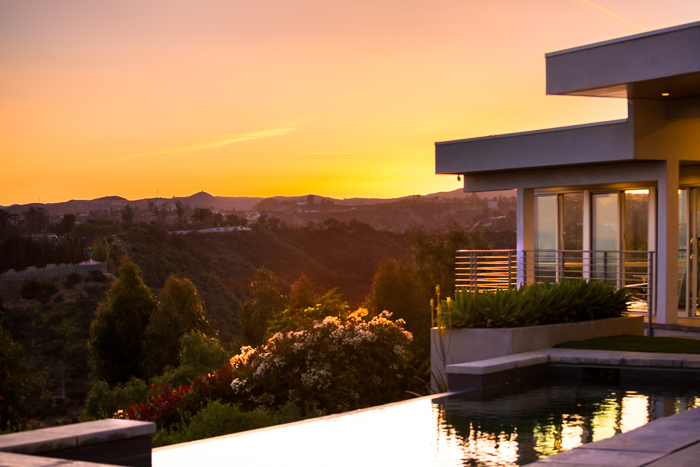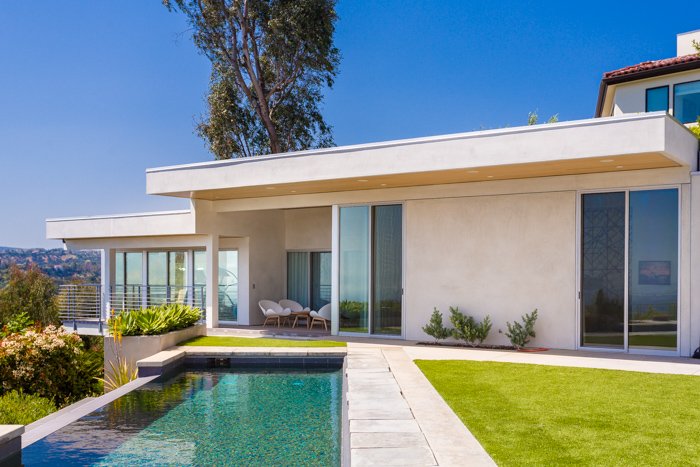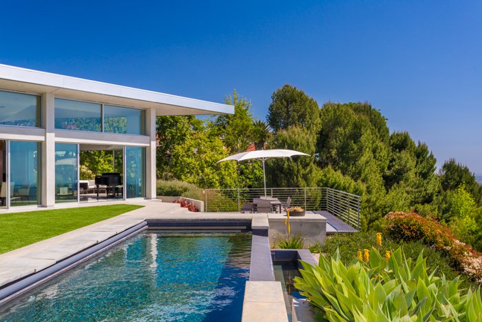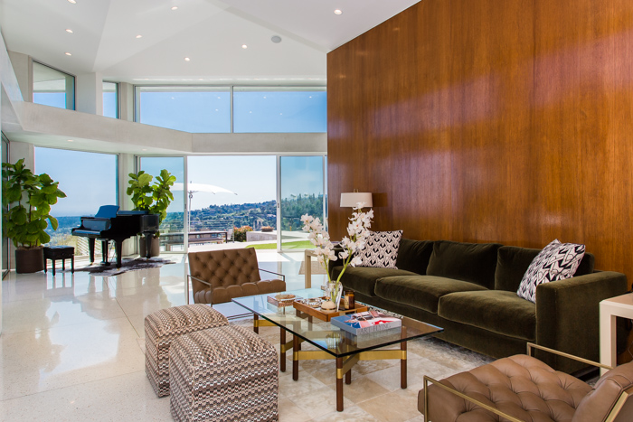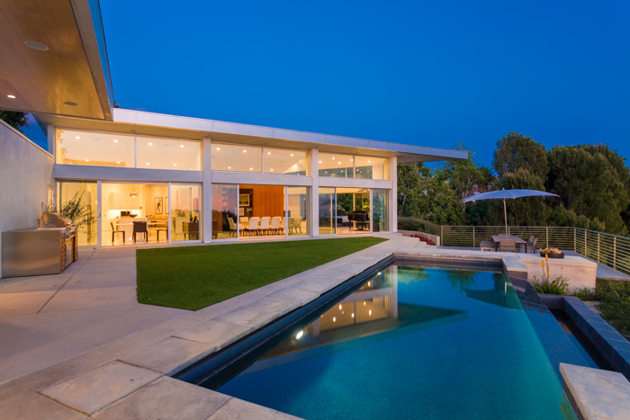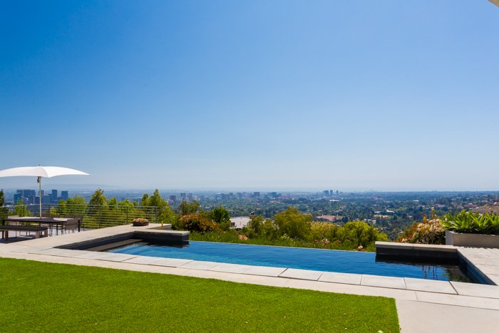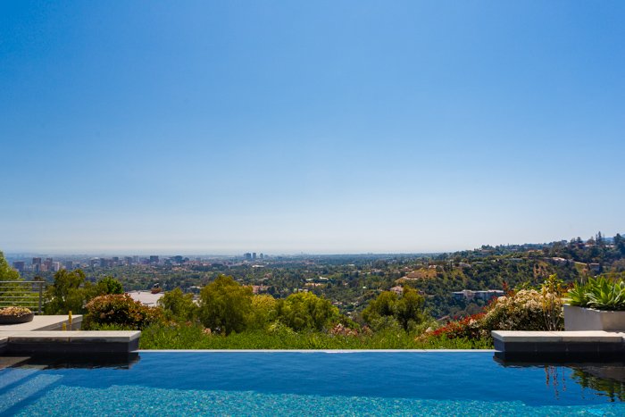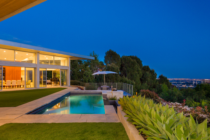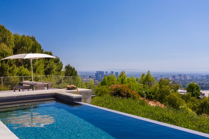 A home of extraordinary prominence since its original construction in 1961, Tower Grove House was completely reimagined, expanded, upgraded, and masterfully remodeled over a period of years with completion in the Summer of 2015. Situated on nearly half an acre, the home takes full advantage of its truly breathtaking unobstructed views of Southern California across Beverly Hills, Century City, Westwood, and Santa Monica from Palos Verdes to Catalina and up the coast. 42 custom Fleetwood doors and windows interact with the surrounding landscape, infinity pool, and jetliner views of city, ocean and mountains. Inside this “smart house” is a fully integrated audio, video, and lighting system for entertaining, and multiple HVAC units with hospital-grade HEPA and UV air purification system for comfort. The gourmet eat-in marble kitchen with sprawling island flows into the family room, and connects to a formal dining room overlooking the pool and city lights. Kitchen, dining room, and living room open up via floor-to-ceiling doors for true indoor/outdoor California living. All 4 bedrooms are en-suite with marble baths featuring Waterworks faucets and fittings. The luxurious master suite features an office and oversized dual closets, and it is supported by its own water and climate control systems. Intelligently designed for today’s modern needs, the home runs off the grid on solar during the day, has a three-car garage with two electric car charging stations, a library with bar, a den, family room, and a gym with glass on three sides jutting out over the property’s private hillside. On a perch above Beverly Hills, this modern masterpiece is a paradox of sustainable living with luxury, style and grace.